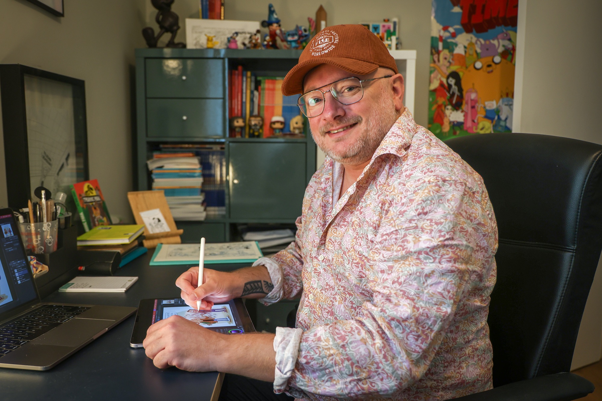 Également sollicité par des revues telles que Spirou ou Le Journal de Mickey, cet ancien ingénieur en informatique a transformé sa passion en métier, avec constance et enthousiasme.
