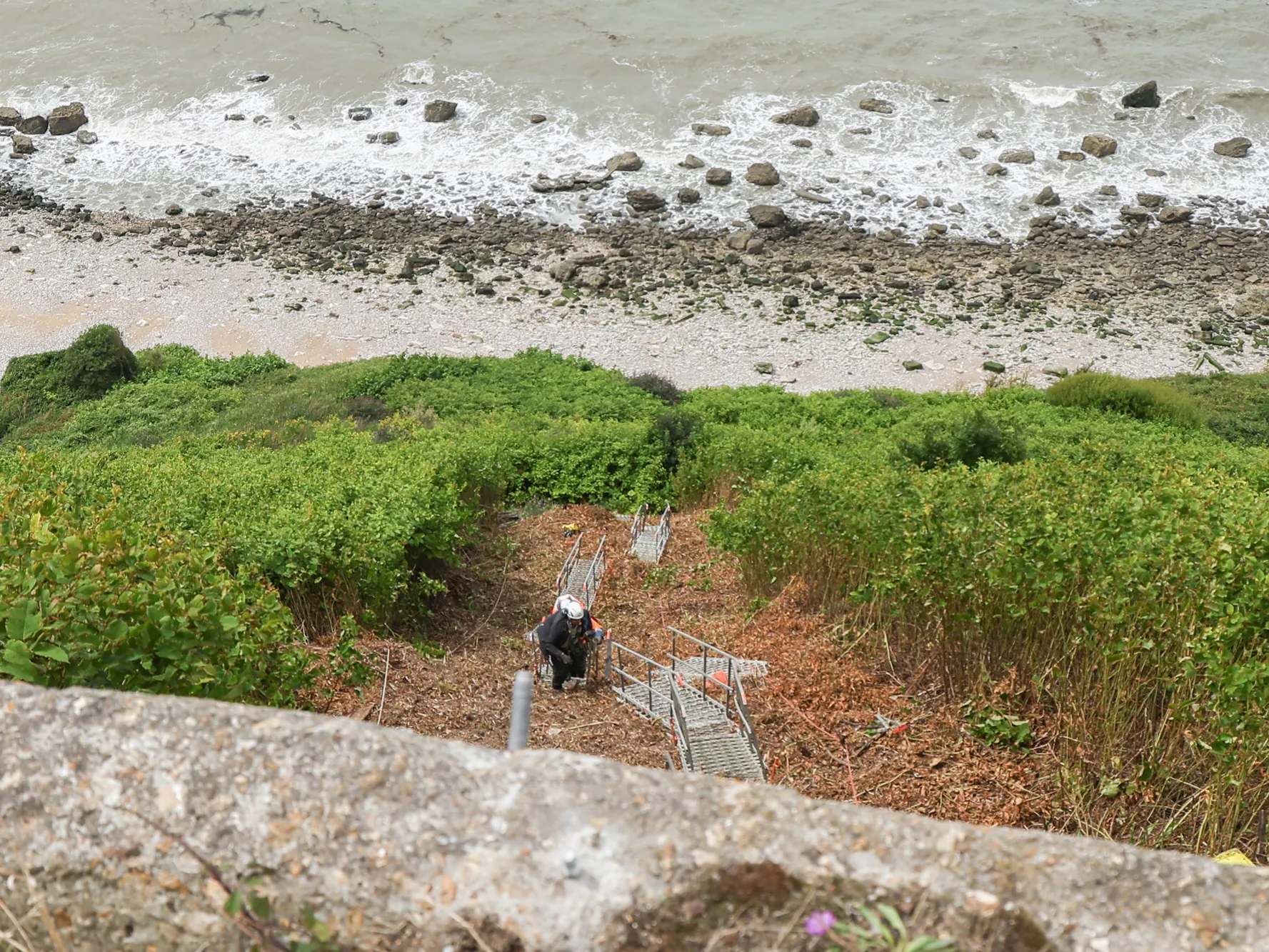 Le chantier, jamais réalisé à une telle échelle sur falaise, mobilisera des moyens techniques complexes sur plusieurs années. Une plateforme de tri sera installée en bas de falaise, tandis qu’une grue remontera les matériaux jusqu’à une seconde plateforme pour un tri plus fin, avant leur valorisation ou traitement en site spécialisé.
