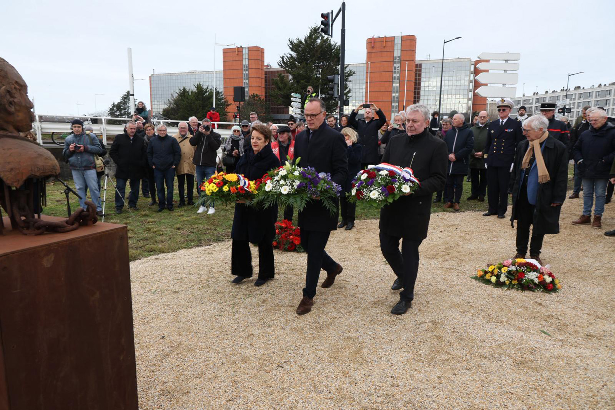 Ce vendredi 20 février à 11h, une cérémonie commémorative s’est tenue quai Colbert, à proximité du pont Vauban, en hommage à Jules Durand. Élus, représentants associatifs et syndicaux, membres de la famille de Jules Durand, ainsi que des habitants, se sont rassemblés près du buste installé sur le quai pour rappeler la mémoire de ce syndicaliste havrais, au cœur de l’une des plus graves erreurs judiciaires du XXe siècle.