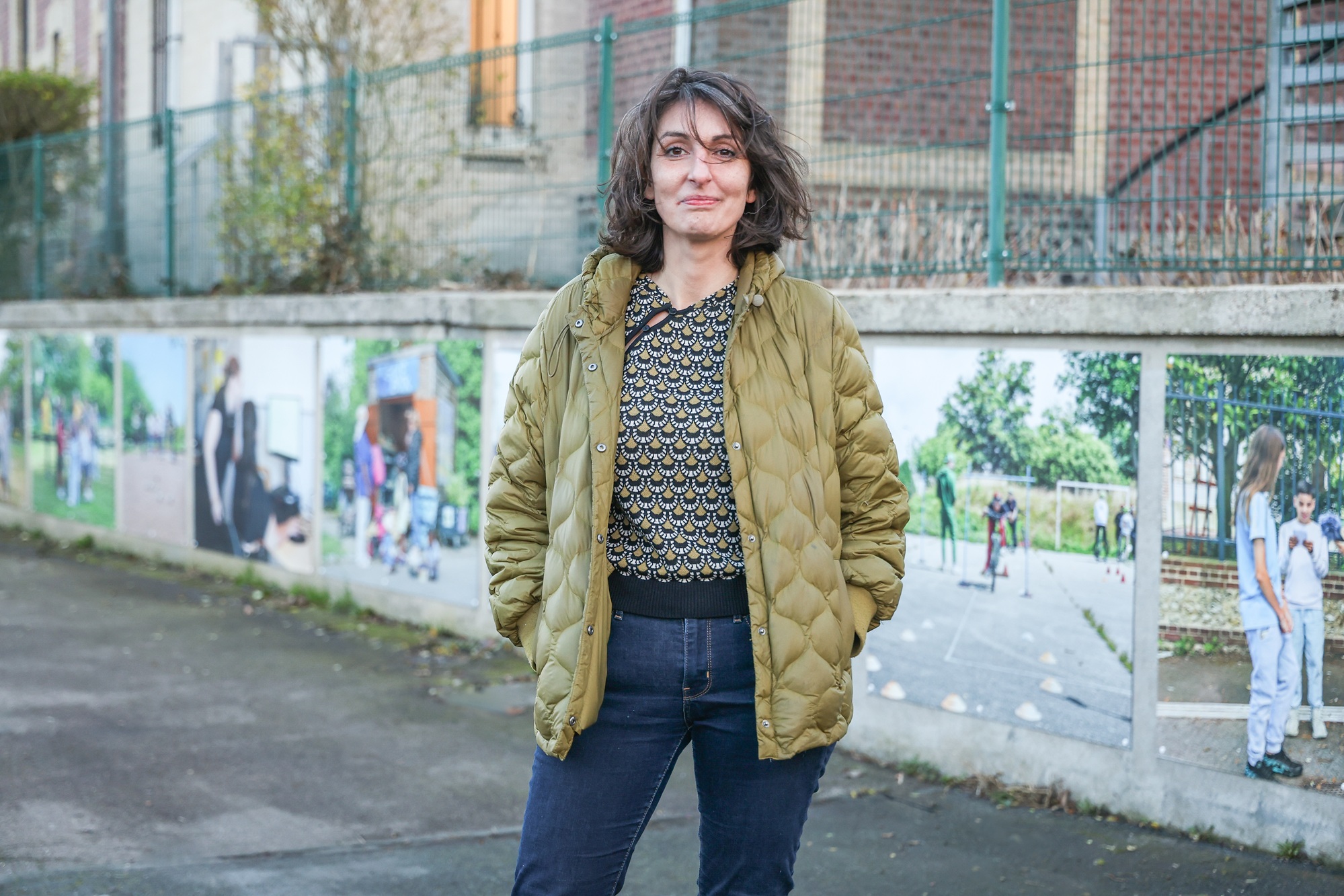 Une fresque photographique, réalisée avec des habitants du quartier, s’affiche en grand format devant la Fabrique Augustin-Normand.