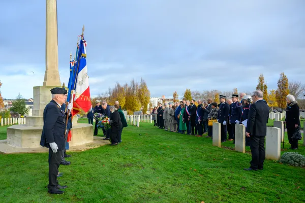 Cette journée d'hommage a débuté dès 10h devant le Carré des Sépultures britanniques au cimetière Sainte-Marie. Après une première allocution, des gerbes de fleurs ont été déposées par les autorités et les associations pour rendre hommage aux combattants morts pour la France pendant la Première Guerre mondiale.