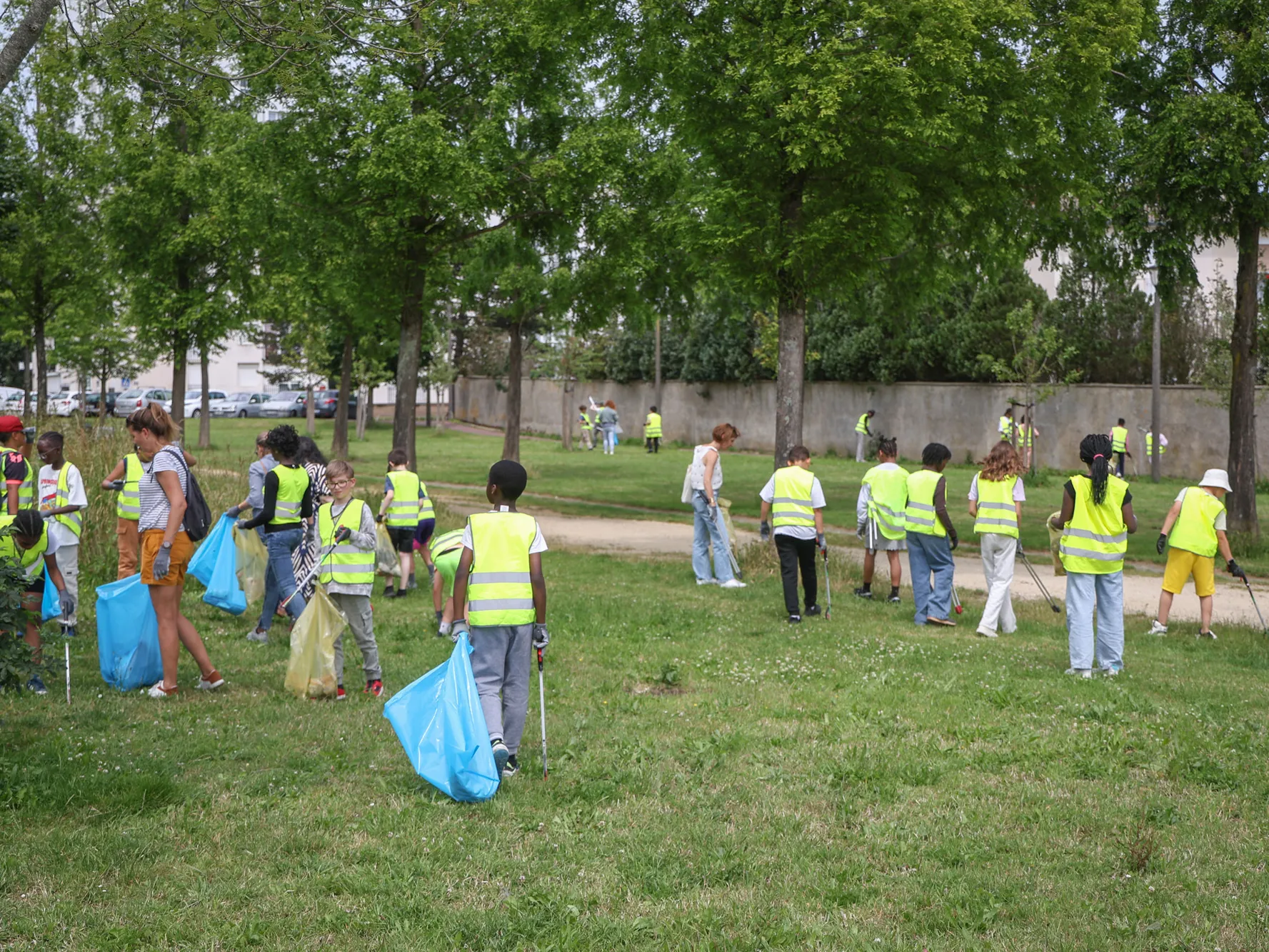 Les 5 classes de CM1 et CM2 de l'école Grouchy 2 se sont donc rassemblées, ce vendredi 13 juin, pour un après-midi dédié au ramassage des déchets. Ils étaient accompagnés de leurs 5 professeurs, de 10 parents d'élèves accompagnateurs, mais aussi des équipes de la Ville issues des services de la propreté urbaine, des espaces verts et de l'environnement, accompagnées d'Antonin Gimard et d'Emmanuel Diard, conseiller municipal délégué pour le quartier de Caucriauville.