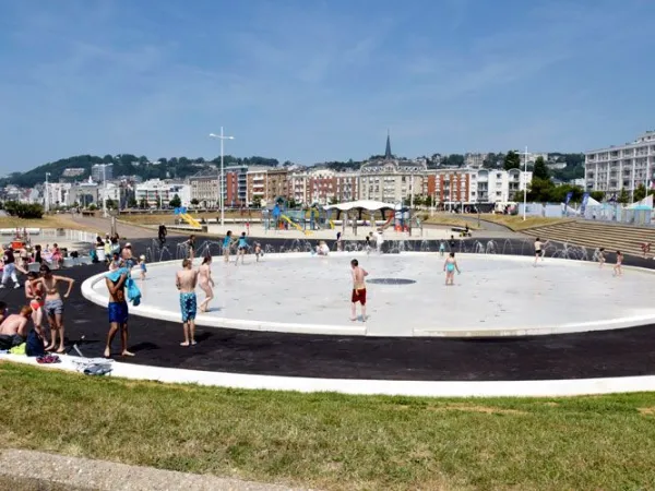 La pataugeoire de la plage, créée en 1968 par les architectes Decheneau et Hermant de l’atelier Perret, est un élément emblématique du patrimoine de la ville, issu de la reconstruction. Nichée dans une alvéole semi-enterrée, elle a été transformée en 2018 en une aire de jeux d’eau moderne.
