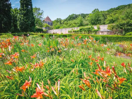 Ici les jardiniers se sont adonnés avec passion à leur art, jouant avec la diversité des feuillages, créant des associations de couleurs et de hauteurs, jusqu’à la création d’un “espace zen“ au sein de ce jardin. L'eau est également très présente avec un ruisseau, un bassin et une fontaine qui complètent ce tableau enchanteur pour tous les sens.