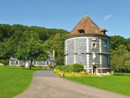 Patrimoine de la communauté urbaine Le Havre Seine Métropole, prairies, étangs et bois s’étendent sur 160 hectares et offrent un écrin exceptionnel au manoir de la Bouteillerie et à son colombier du XVIIe siècle, représentatif de l’architecture du Pays de Caux.