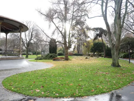 Au détour de l’allée principale, ne manquez pas les doyens du parc, deux platanes rescapés de la Seconde Guerre mondiale. À leurs pieds, l’étonnant arbre de Judée, un hêtre pleureur ou encore un oranger du Mexique qui embaume ce massif généreux. Côté rue Georges Braque, un enrochement végétal fait de buissons taillés, forme un cadre de verdure original autour des magnolias, des cerisiers du Japon et du cèdre bleu de l’Atlas. Sur la pelouse en face, un eucalyptus.