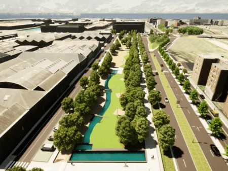 - Par la redéfinition de l’esplanade d’entrée de ville, création d’un espace de nature en ville agrémenté d’un ruisseau