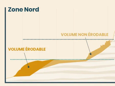 - phase 2 / zone nord : traiter le volume érodable (107 000 m3) puis assurer une surveillance de l’érosion réelle du site