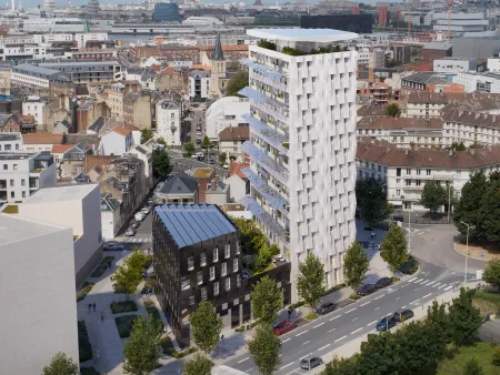 Avec ses 74 logements locatifs, la tour à énergie positive du promoteur Elithis permettra à ses habitants d’avoir une facture de chauffage et d’eau chaude nulle grâce à des panneaux photovoltaïques qui produiront plus d’énergie que la tour n’en consommera. Au sommet se trouvera une terrasse collective. L’édifice constituera un point de repère important dans le paysage urbain des quartiers Sud.