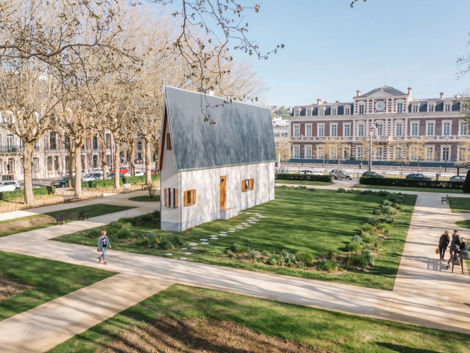 Installée une première fois dans l’avenue Foch au Havre en 2019, la Narrow House est désormais installée durablement dans le square Érignac.