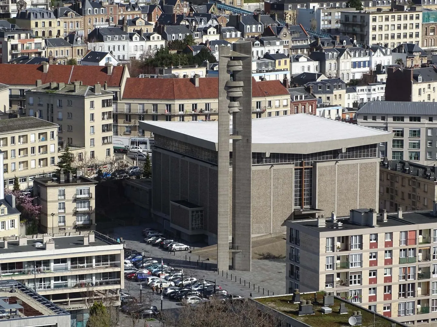 Conçue par l’architecte havrais Henri Colboc, grand prix de Rome, l’église Saint-Michel s’intègre au plan d’ensemble d’Auguste Perret tout en affirmant son style propre, éloigné du Classicisme structurel.