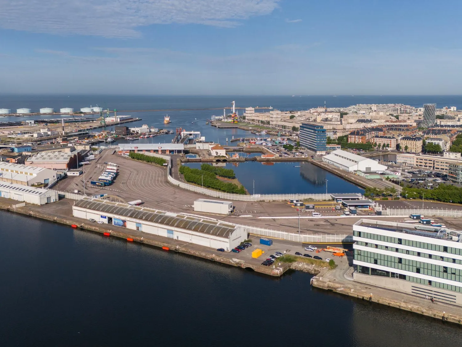 Un projet global d’aménagement de l’entrée de ville est réalisé par l’urbaniste Bruno Fortier sur un site de forme triangulaire. Face au Pôle des gares (BLD Architecture, 2001), le Novotel (Jean-Paul Viguier, 2005) s’y inscrit sur la base d’un triangle vide en son centre. En fond de bassin Vauban, la Chambre de Commerce et d’Industrie du Havre réalisée par l’architecte havrais René Dottelonde (2005), renforce l’idée symbolique de « porte de la ville », avec son encadrement translucide formant une arche.
