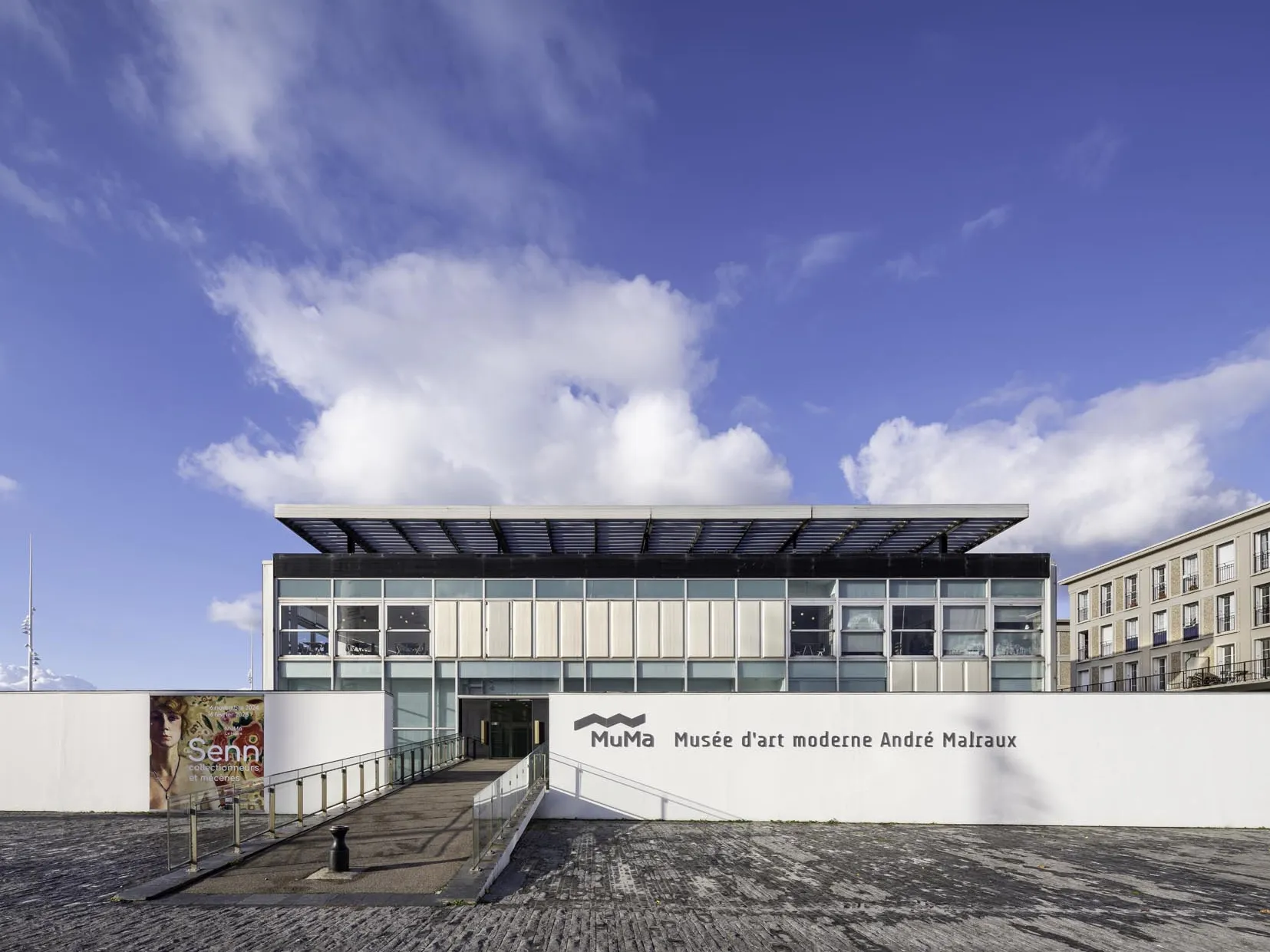 En 1952 est confié à Reynold Arnould, conservateur des musées de la Ville du Havre, l’étude d’un Musée d’Art Moderne destiné à remplacer le musée des Beaux-Arts de la rue de Paris. Il ambitionne d’implanter au Havre, un musée-pilote, le plus moderne d’Europe. Inauguré en 1961, le Muma est l’œuvre d’un architecte dissident de l’atelier de reconstruction, Guy Lagneau, associé à Raymond Audigier, Michel Weill et Jean Dimitrejvic. Installé au-dessus du toit, le paralum en lames d’aluminium est une performance technologique de l’ingénieur Jean Prouvé.