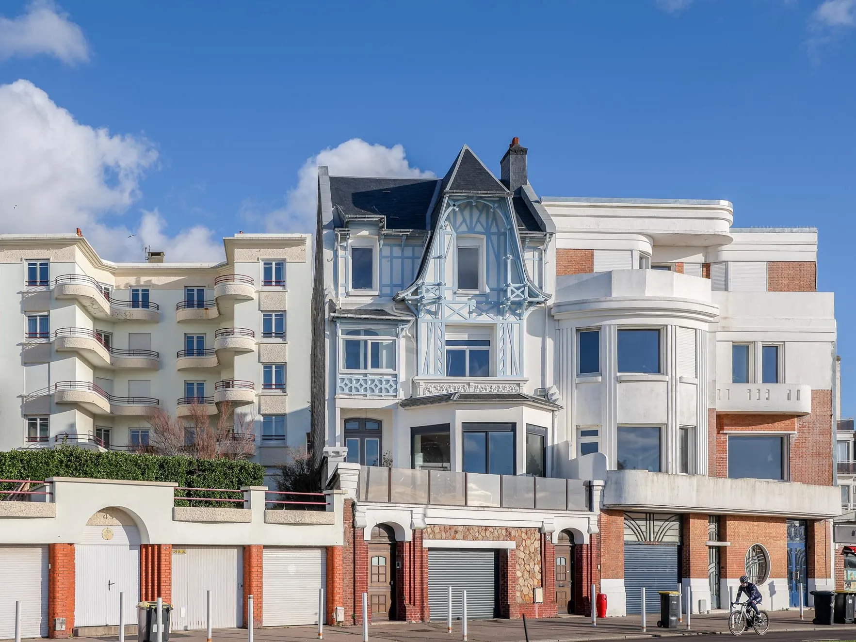 L’architecte havrais Henri Daigue a réalisé un ensemble de cinq immeubles en front de mer, déclinant des caractéristiques arts déco. Ils sont encadrés à chaque extrémité d’un immeuble art nouveau, aux éléments de ferronnerie très travaillés.
