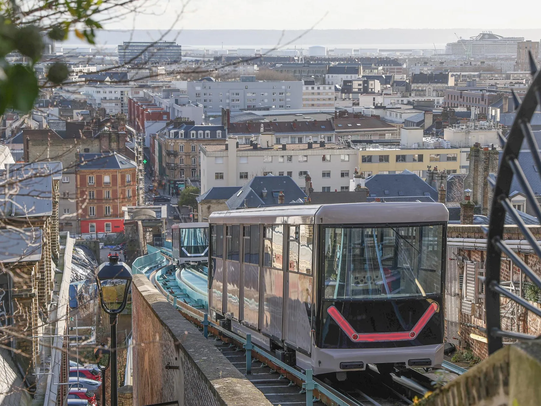 Le funiculaire de la côte surnommé « la ficelle » relie la rue Gustave Flaubert en ville basse à la rue Félix Faure en ville haute.