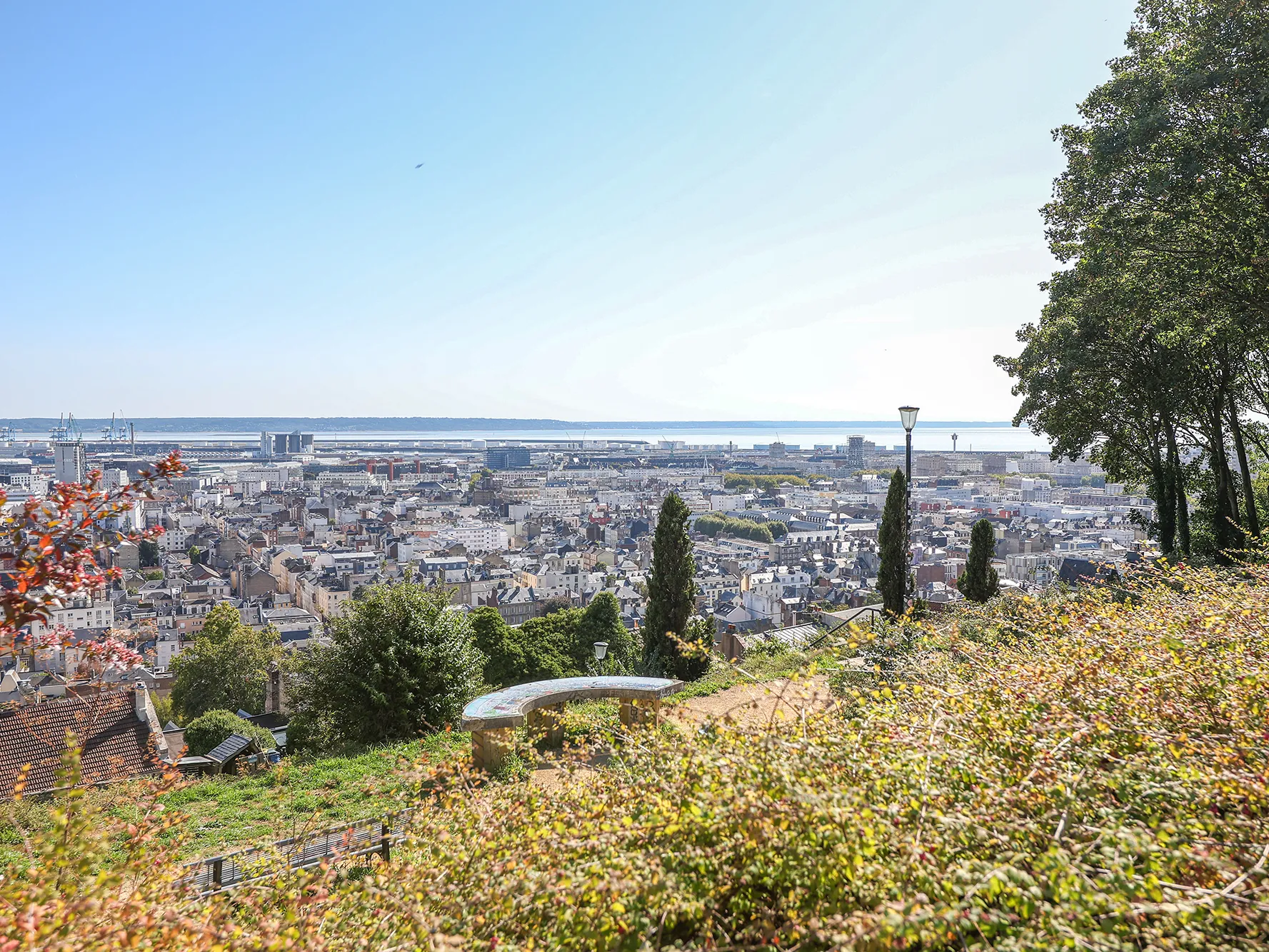Outre la démarcation très nette, à l’Ouest, entre la ville du XIXe et ses toits d’ardoise à double pan, qui tranchent avec les toits terrasses et les îlots de la ville reconstruite par Auguste Perret, on distingue nettement au Sud les bassins historiques du XIXe siècle et les quartiers ouvriers qui les bordent. On comprend mieux pourquoi les grands négociants havrais de l’époque ont fait construire leurs demeures sur cette côte, d’où ils pouvaient voir les résultats de leurs activités.