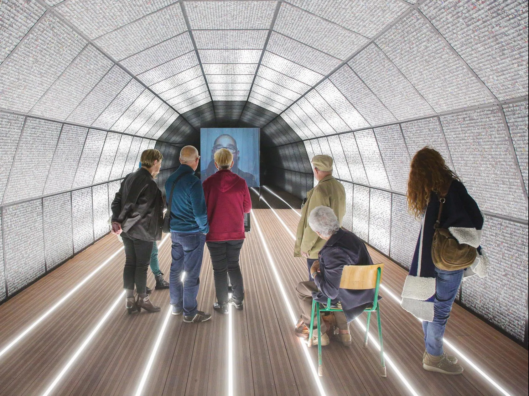 Durant un événement appelé « Clic-Clac, portrait d’une ville », qui a eu lieu en 2017, l’année du 500ème anniversaire de la ville, chaque personne habitant ou passant au Havre était invitée à être prise en photo dans une cabine, un combi mobile ou à envoyer leur prise de vue sur une plateforme digitale. Tous ces portraits ont été triés et collectés pour former cette installation ressemblant à une capsule temporelle. Suspendus dans le temps, les visages et les personnalités se révèlent, multiples et uniques à la fois, pour constituer une photo de famille géante.