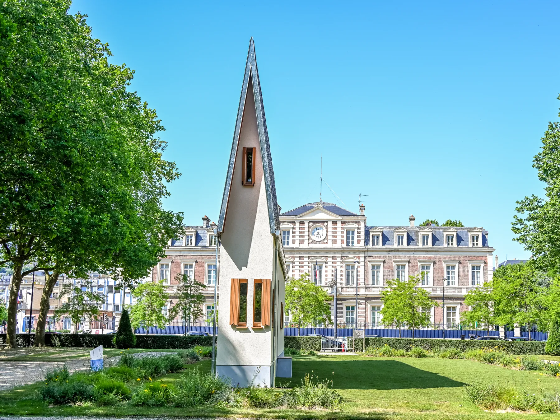 Cette œuvre évolutive verdira au fil des ans, sous les yeux des passants et des habitants qui pourront observer sa lente croissance.
