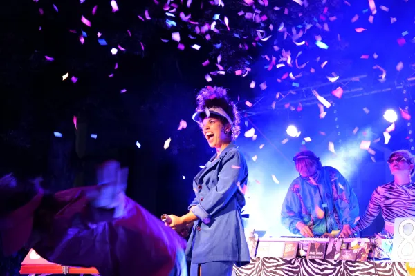 Amour Super est une boum qui rend hommage au divertissement, à l’Eurodance, à l’Amour niais, aux plateaux TV du samedi soir, à la fête foraine, aux chenilles géantes, et à la beauté des corps qui suent dans une danse féroce. Des tubes enflammés aux slows 90’s en passant par l’Eurodance des années 2000, laissez-vous guider à travers l’univers Amour Super.