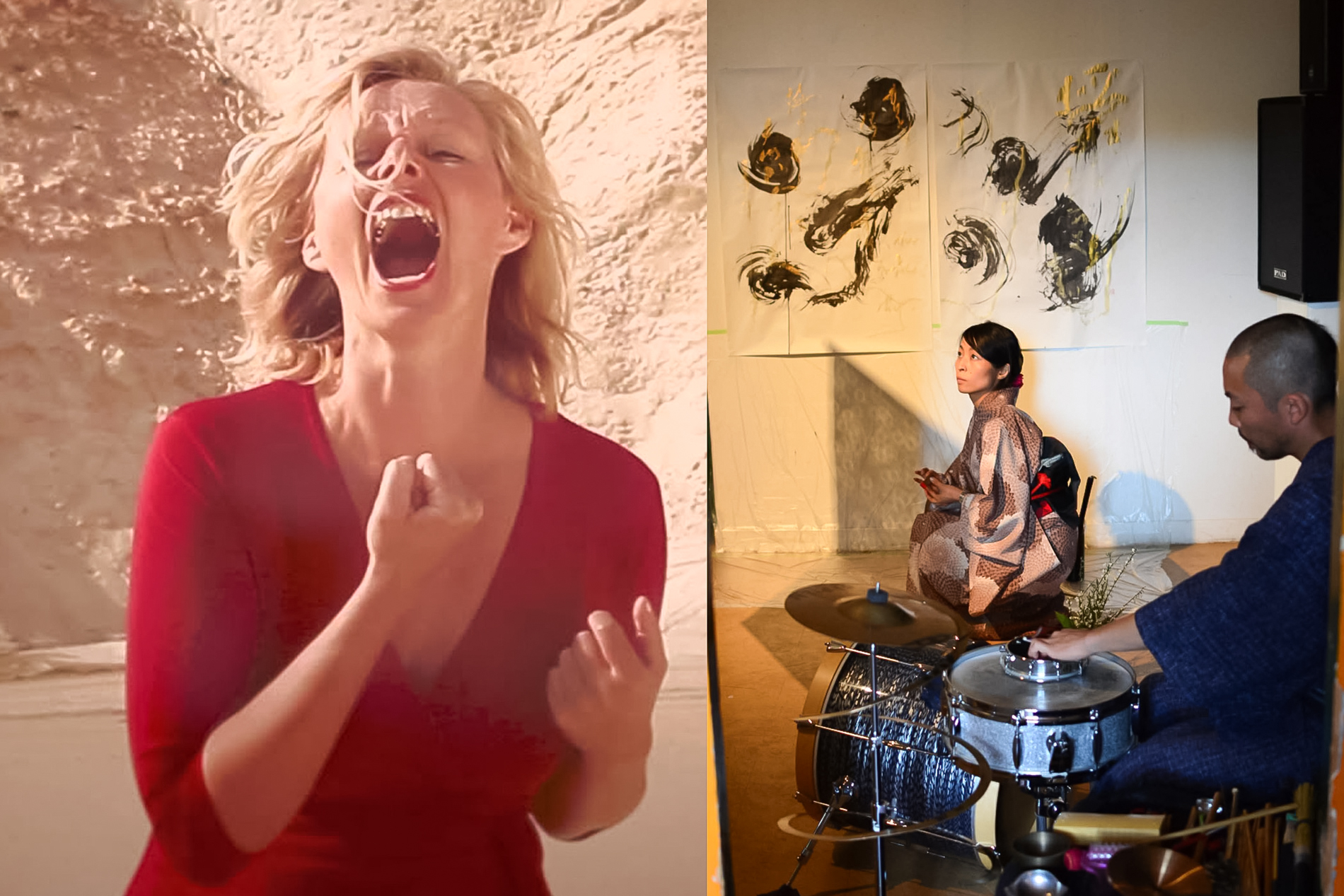 Cette soirée explorera différentes façons de faire entendre et percevoir le son : voix transformée par l’acoustique d’un lieu, calligraphie réalisée en direct au rythme de la percussion et interventions vocales inattendues.