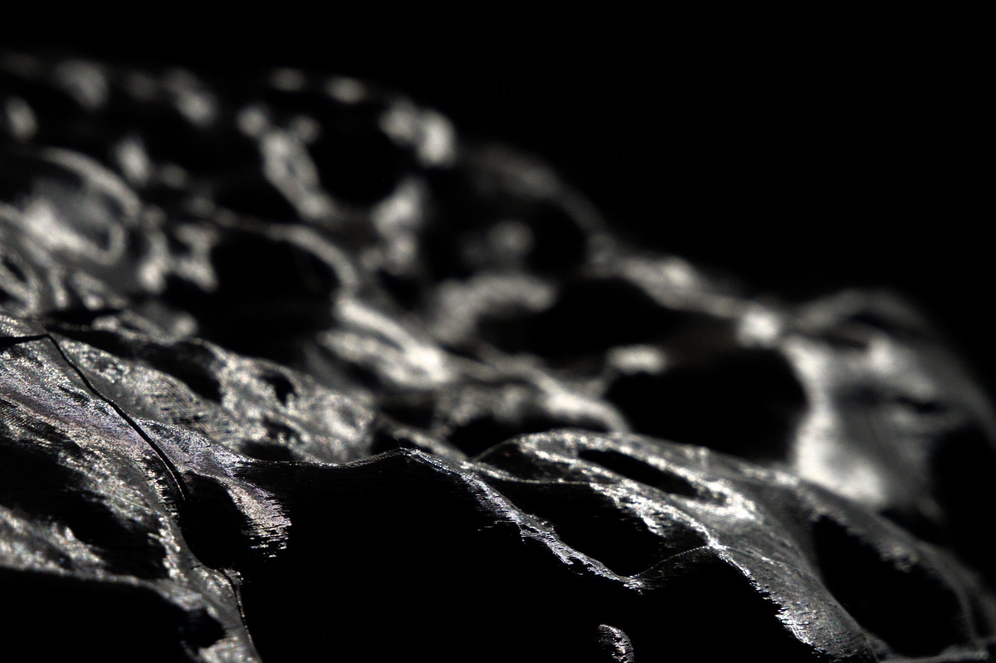 Aidé d’outils d’impression numérique, l’artiste allie son expérience intime à des phénomènes qui le dépassent. Ainsi, les rideaux, supports de contemplation, apparaissent sous la forme d’un patchwork et de collage avec des fragments d’ardoises.