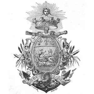 Les armoiries attribuées par le roi, en référence à l’emblème paternel, sont « de gueules à la salamandre d'argent couronnée d'or sur un brasier du même, au chef cousu d'azur chargé de trois fleurs de lys d'or », avec pour devise « nutrisco et extinguo », qui signifie je me nourris [du bon feu] et j’éteins [le mauvais].