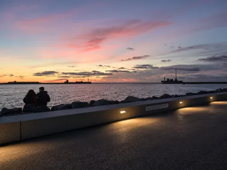 - admirez la plage et la promenade du bord de mer jusqu’au « Nice havrais », là où Monet a peint sa fameuse Terrasse à Sainte-Adresse, en 1867. Ce balcon sur la mer offre un spectacle de lumières changeantes et de reflets marins au milieu du va-et-vient des bateaux. Une expérience impressionniste à la fois contemplative et animée.