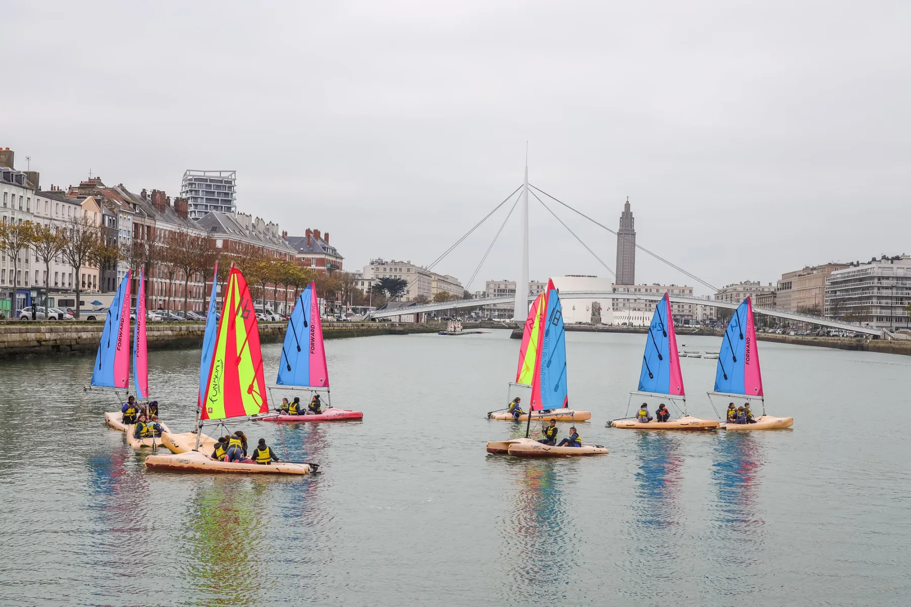 Lieu emblématique pour des générations de Havrais, chaque année entre 40 et 50 classes de cours moyens (cycle 3 de CM) découvrent la pratique de la voile au bassin du Commerce et celle de l’aviron au bassin de la Barre.